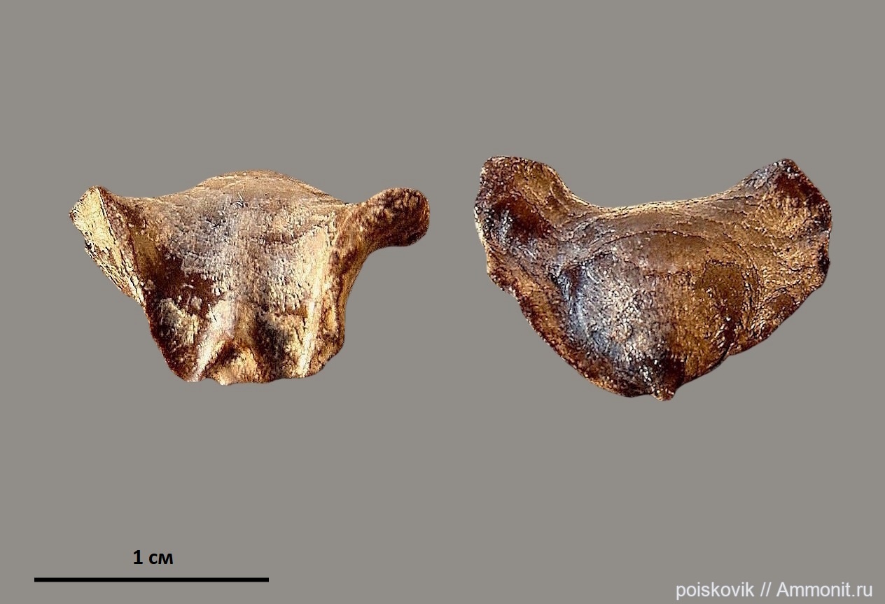 Брахиопода (вид спереди и сзади). Симферопольский район, Петро-Павловский карьер. Размер: 1,5см Х 1,5см.