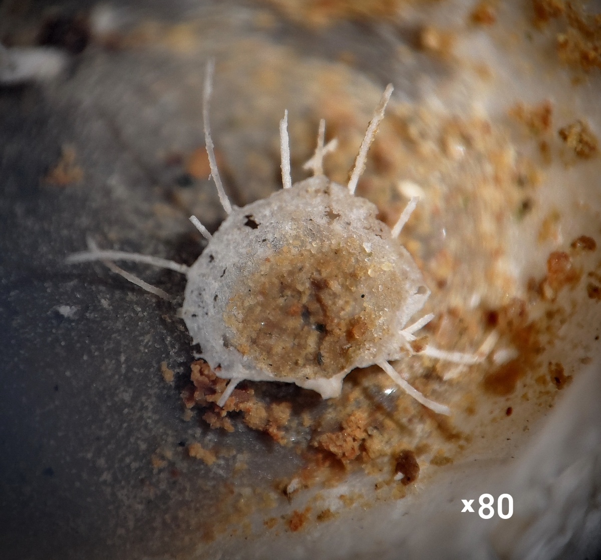 Препарировано хим. способом. Во второй створке расположена ювенильная форма C. cancrini (x 80).
