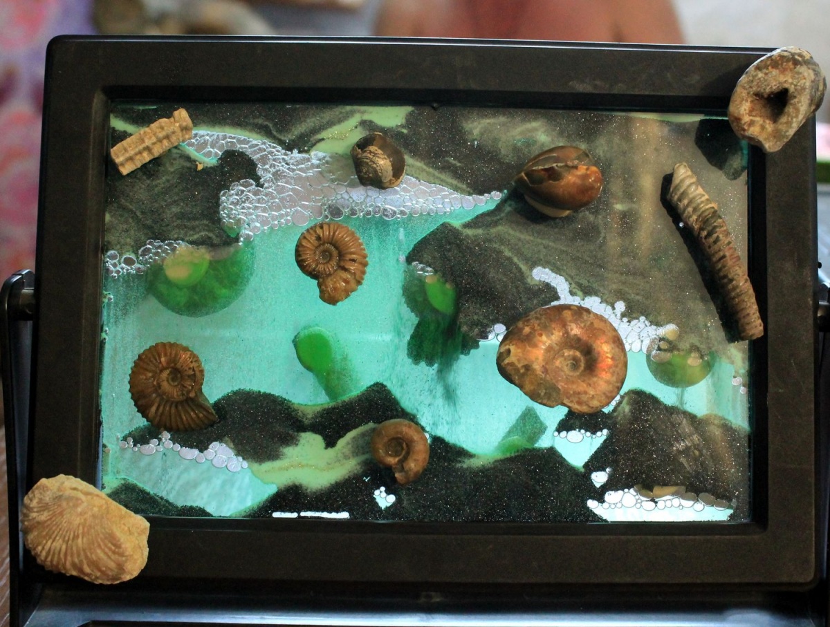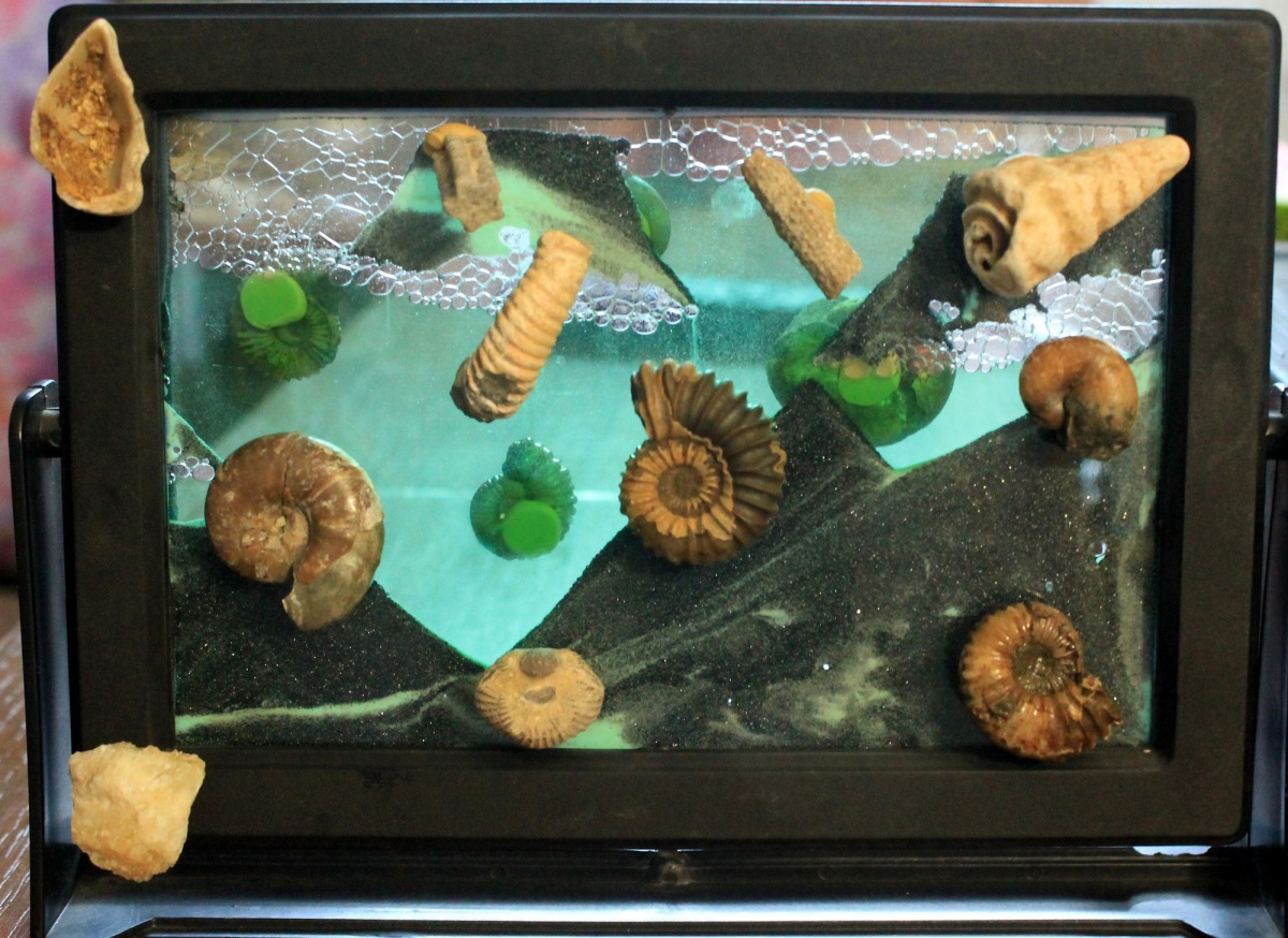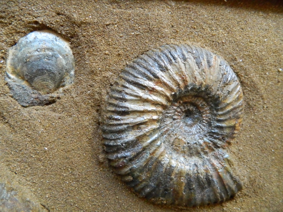 Натуральные аммониты, белемниты и двустворки на натуральном матриксе из песчаника. Тяжелая получилась "штуковина", около 50 кг.