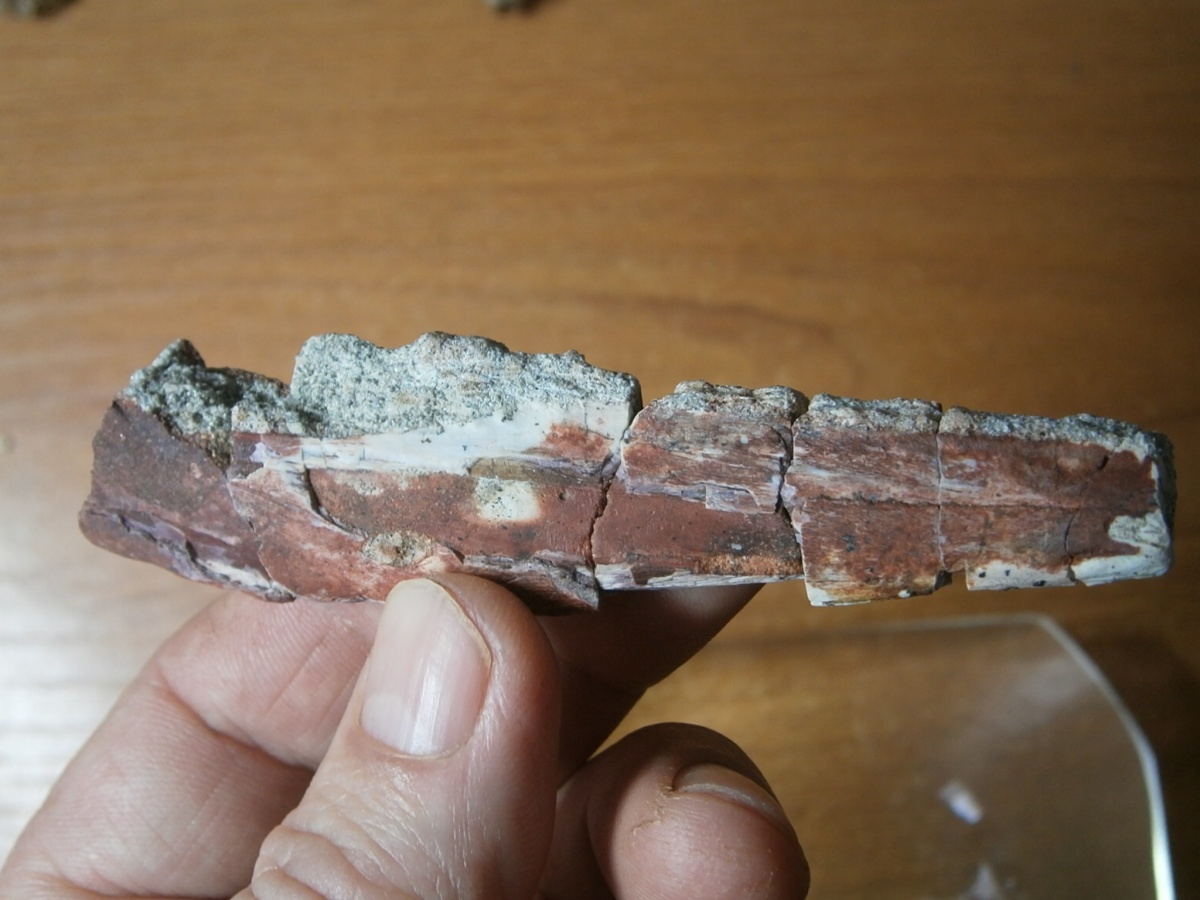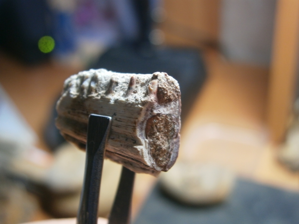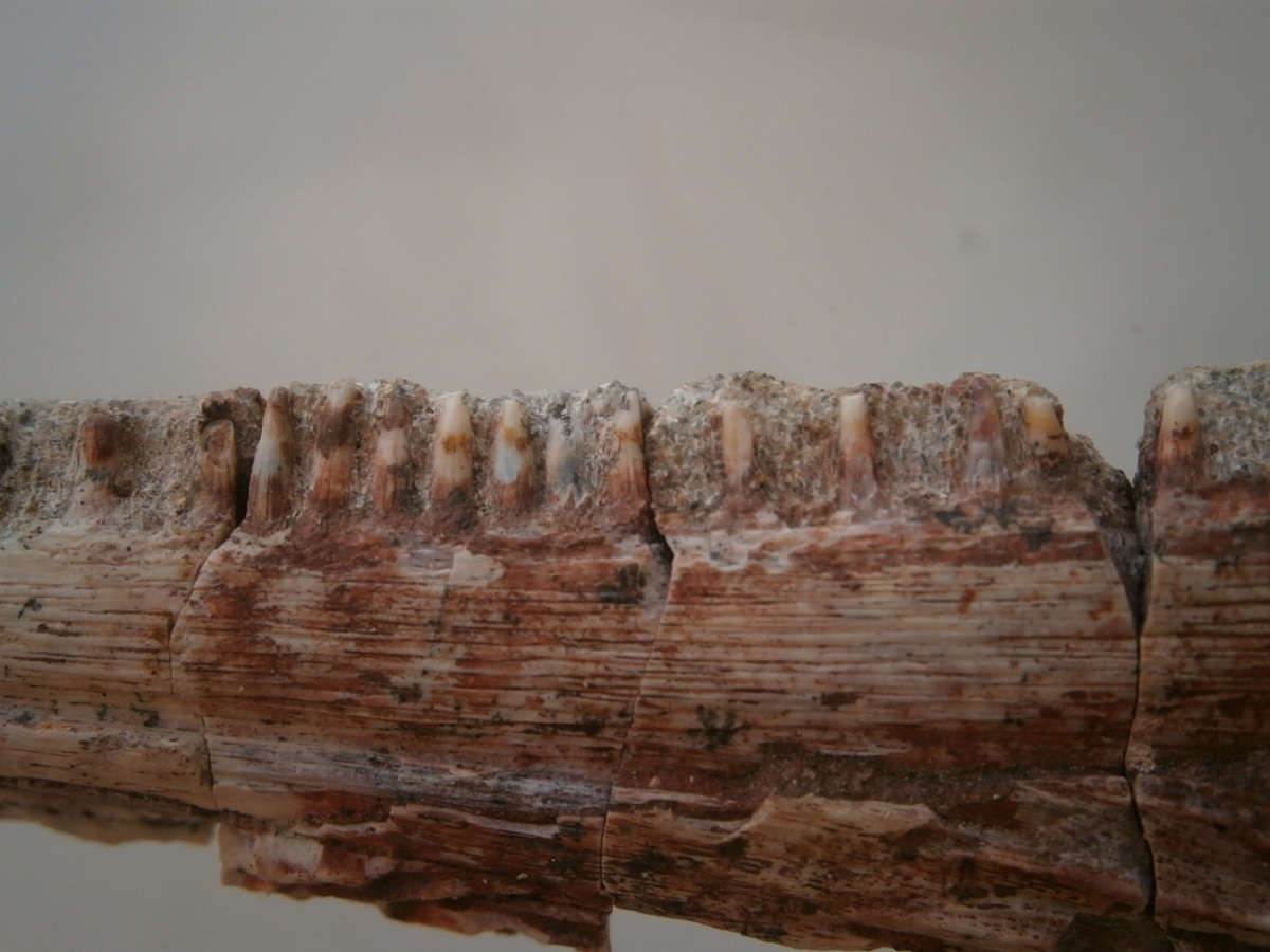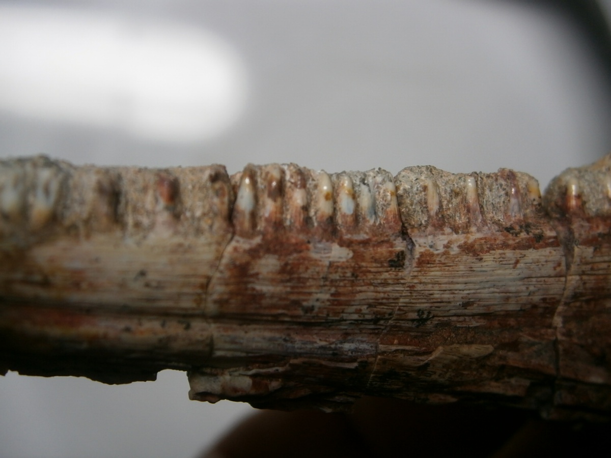 Очень необычная задача для меня.Во первых сразу все развалилось на несколько частей.Затем, -неимение опыта,крепкая порода между зубками,да и малое расстояние между самими зубами, очень все осложняло в этом процессе(пришлось позаимствовать в школе микроскоп).Вообщем получилось как получилось,не судите коллеги строго. Фотограф я слабый,аппарат - мыльница.А посему пришлось делать много проб и выбирать хоть что то из того, что бы суметь представить все более- менее приемлемо. доп.фото 1. фото 2. поперечный срез челюсти . ракурс . зубки . еще зубки . ракурс . блеск эмали . ну и на последок .
