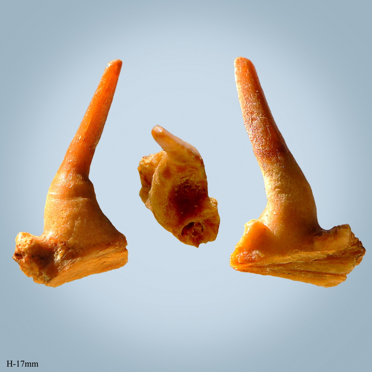 За прошедший год подобралась небольшая коллекция зубов из маастрихта имеющих необычный корень. Вроде то, что это Enchodus сомнений не было. И даже Enchodus faujasi т.к. в нашем маастрихте описан, вроде бы, только он. Но как они располагались в челюсти было не совсем понятно. Но, недавно, мне попалась на глаза фотография скелата Enchodus. И все встало на свои места! На представленной выше фотографии клык верхней челюсти. На этой Фото клык нижней челюсти. А это Фото, которое позволило прийти к таким выводам.