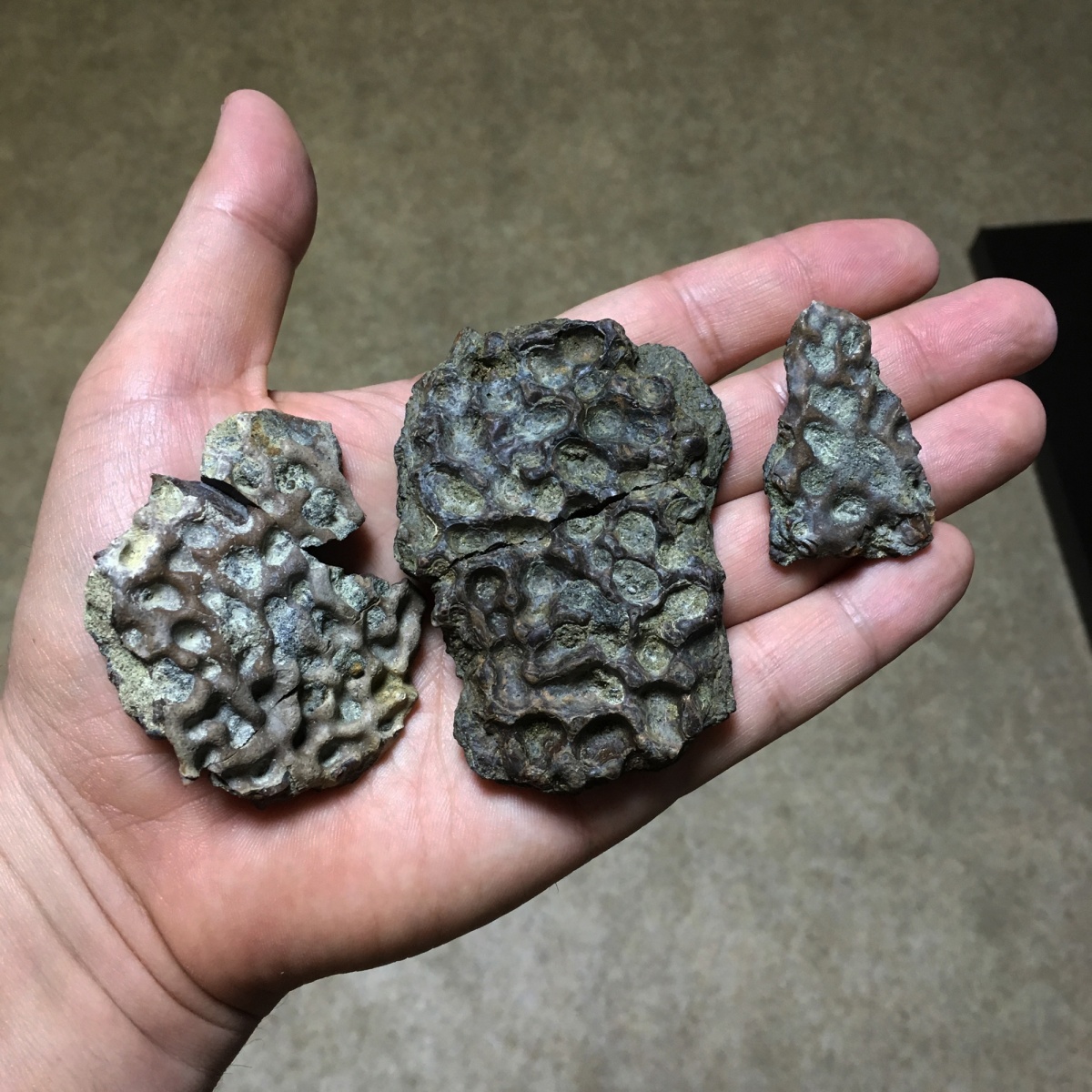 Спасибо! Структура черепной коробки у осетровых спецефична, но есть похожие запчасти у черепах и крокодилов. Похожие ямки/ячейки. Но структура кости другая. У Ваших находок рыбья принадлежность? | ||||||