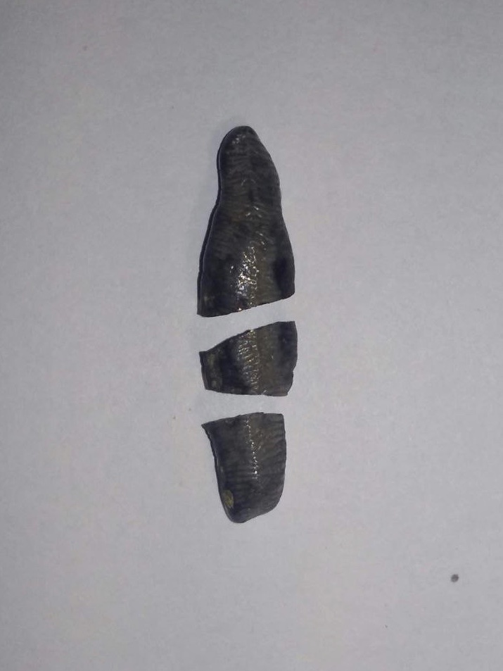 Первую его часть, самую крупную, я нашел ещё в сите во время поездки в Пудовкино (В течение Саратовской вылазки летом 2020 года, совместно с cheglok и patergedeon), сама поездка была достаточно сложной, была дождливая погода, я как всегда встал по ветру и собирал глазами песок, просеянный моими товарищами, в следствие чего через пару часов поймал конъюктивит. Второй его сегмент я нашёл в октябре, когда не удержался и перебрал часть отмоя, нашел я его второй краешек и фрагменты не стыковались, тогда я ещё думал, что это от разных зубов, так каково же было моё удивление, когда в феврале я нашёл 3 фрагмент, и вот пазл сошелся идеально, передо мной зуб, который пополнил мою коллекцию сквозь время и пространство.