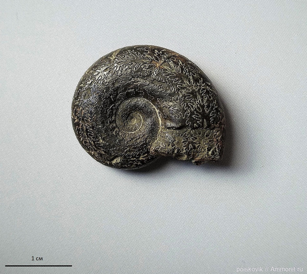 Ядро ожелезненного аммонита из верхне-барремских глин в окрестности п. Верхоречье.