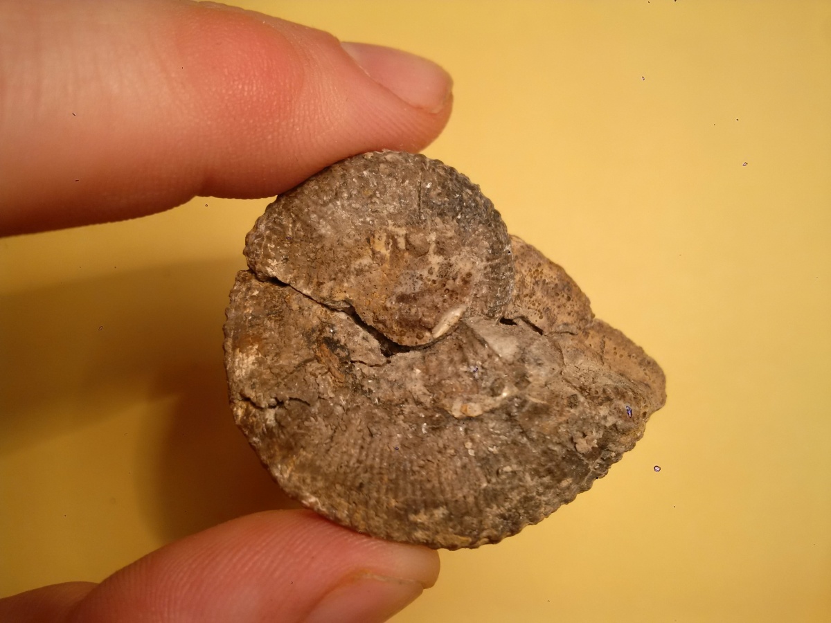 Найден в Михайлове. Провел там целый день, а в итоге понял, что копался не в том месте. Зато разжился позвонком ихтиозавра, предположительно верхний келловей, максимальный диаметр 7 см. Аммонит оттуда
