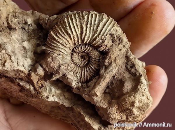 Ядро аммонита (диаметр - 30 мм) в породе.
