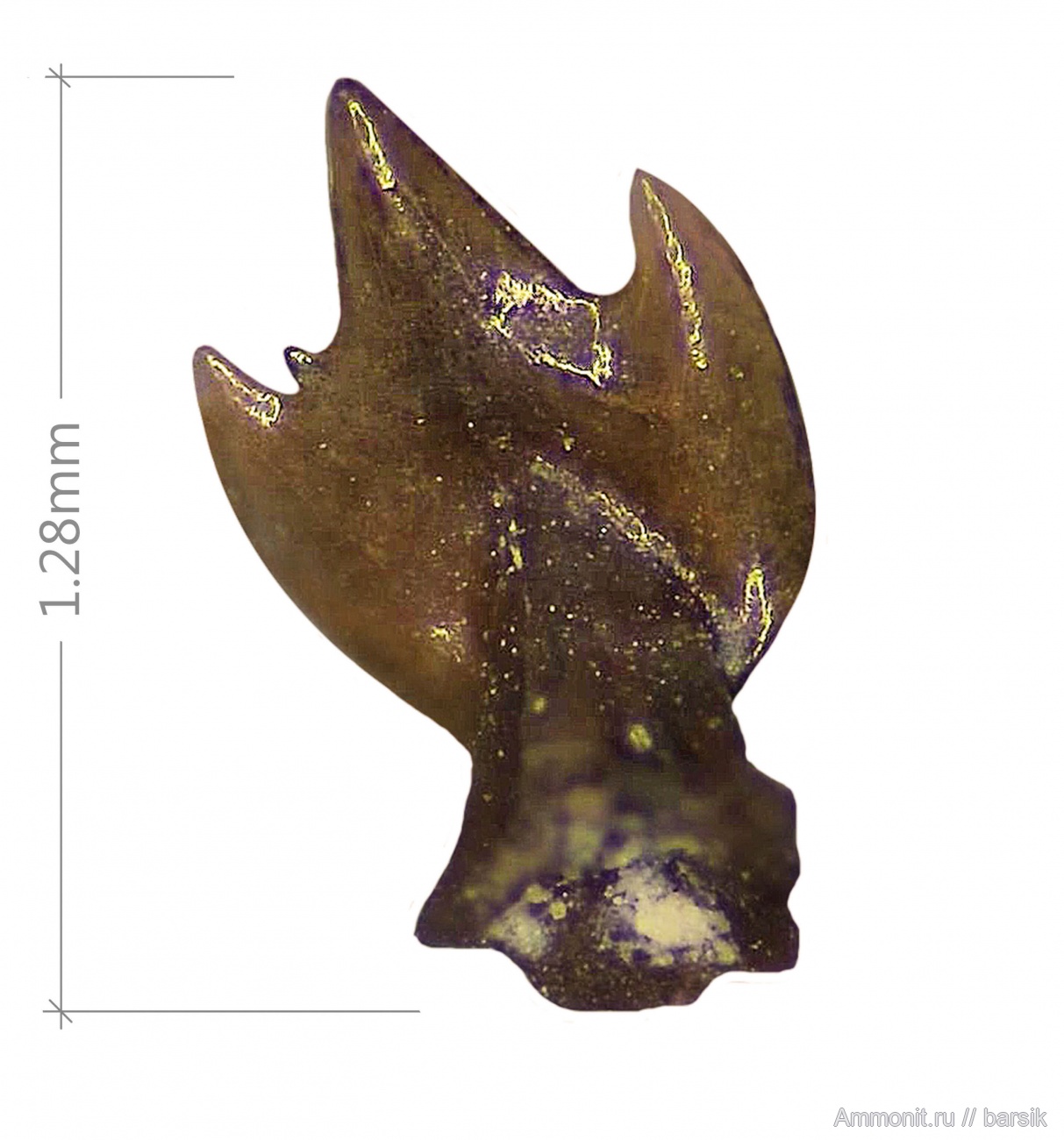 Вот такая "куриная ножка". Наверное, плакоидная чешуя какой то акулы. К сожалению "голень" оказалась не фокусе, позже попробую переснять.