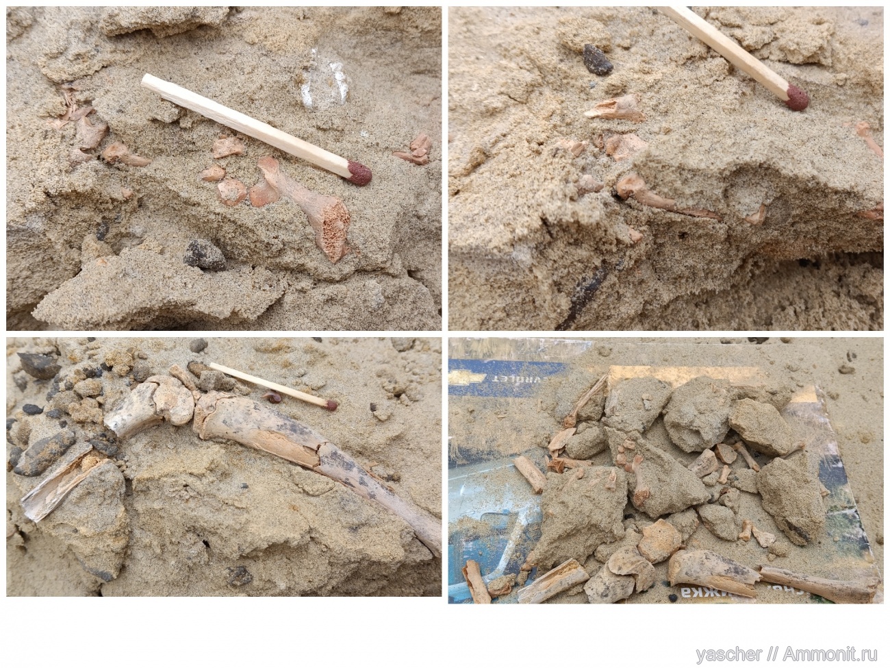 История печальная.Скелет обнаружился на самом краю карьера, в котором постоянно происходят какие то движения, любая осыпь или неосторожное движение могли уничтожить то, что осталось.Большая часть уже уехала видимо уже осенью, когда там работала техника, и скорее всего позвоночный столб, череп, стали частью дороги где - нибудь на просторах Тамбовщины.То, что мне удалось не угробить собрал в контейнер.Точный диагноз станет известен только после того, как все это добро попадет в руки профессионалов, а пока так.
