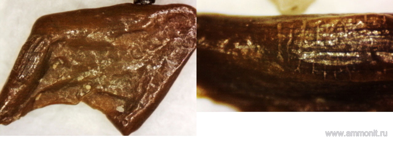 Интересный объект со стороны экологии. Только вот степень сохранности совершенно не радует. Определить рыбу, на теле которой данная чешуйка находилась, невозможно даже до семейства... | ||||||