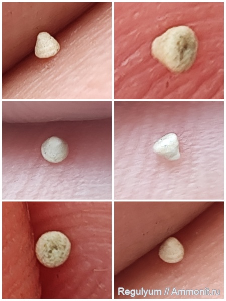 Фораминифера коническо спиральной формы. К сожалению не лучший образец, сильно окатан. Но хотелось зафиксировать на сайте. Размер примерно 1 мм, снять на телефон крайне сложно, использовал максимальное увеличение, 10х. Найдено в Гордеевском районе, Брянской области. 2025 год, весна.