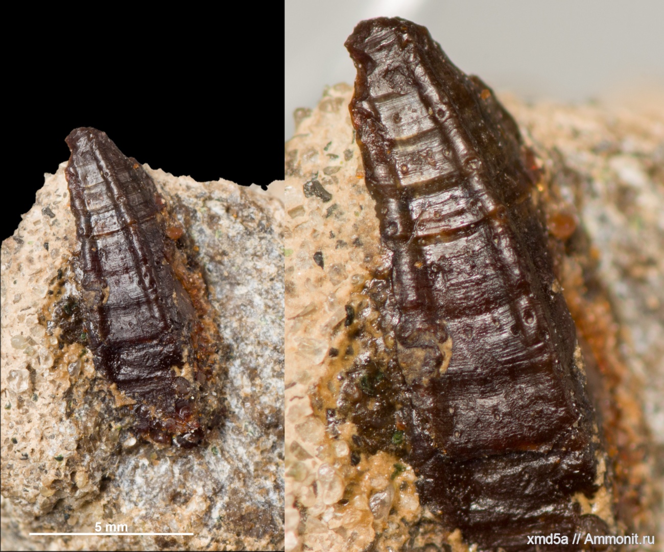 Эта штука была найдена в песчаном горизонте с фосфоритами и с белемнитами Goniocamax. Вероятно, что-то рыбье? Прошу помощи в опознании