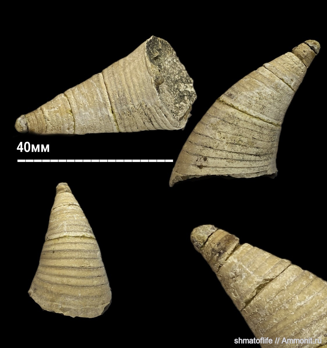 Интересная находка. Но не Orthoceras (это ордовикский род) и даже не ортоцерида - слишком уж большой угол расширения раковины. Я бы пока только привязку к наутилоидеям оставил. | ||||||