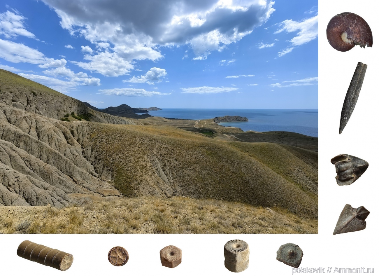 На южном склоне хребта Кучук-Янышар (44.972578, 35.281045) в среднеюрских отложениях встречаются фрагменты морских лилий, ринхолиты, аммониты, белемниты, двустворчатые моллюски и др.