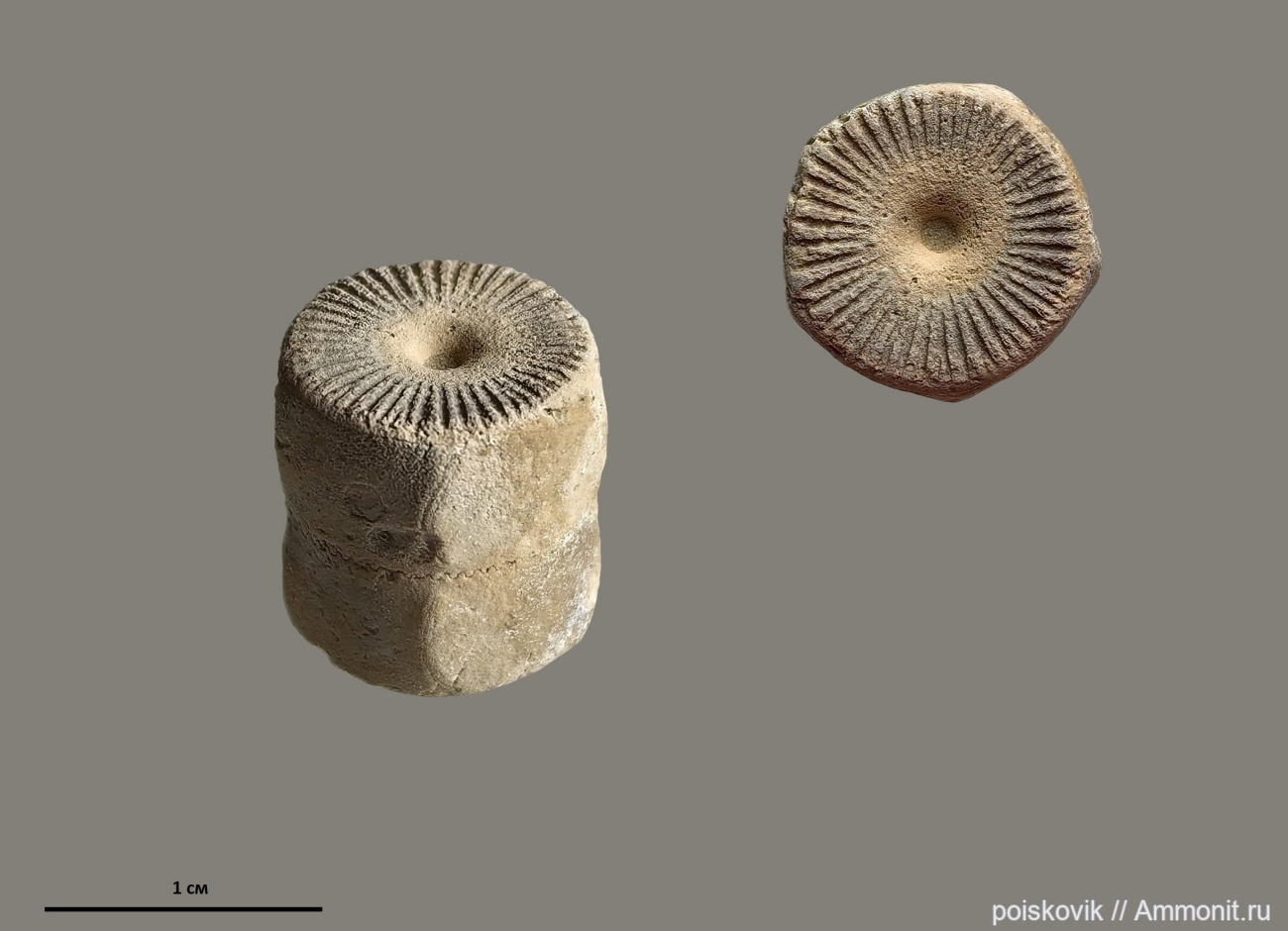 В келловейских глинах окрестностей Янышарской бухты (пгт. Коктебель) нашли фрагмент пятигранного стебля незнакомой нам морской лилии. Просим помощи в определении.