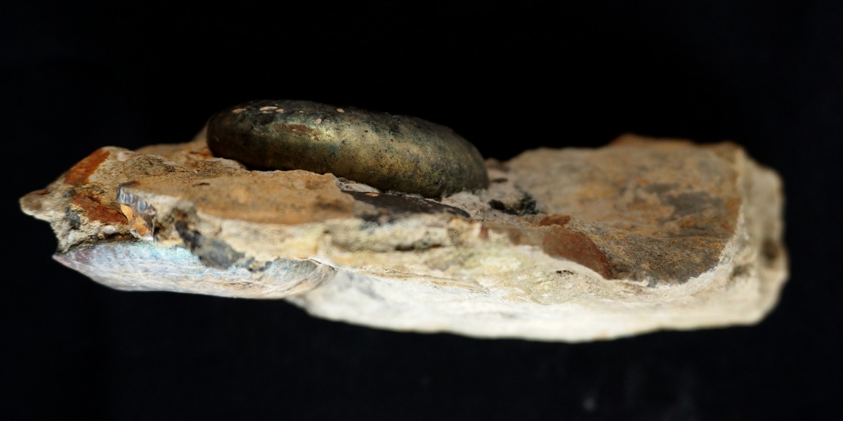 На небольшом камне был обнаружен аммонит Craspedites mosquensis (на фото сверху).