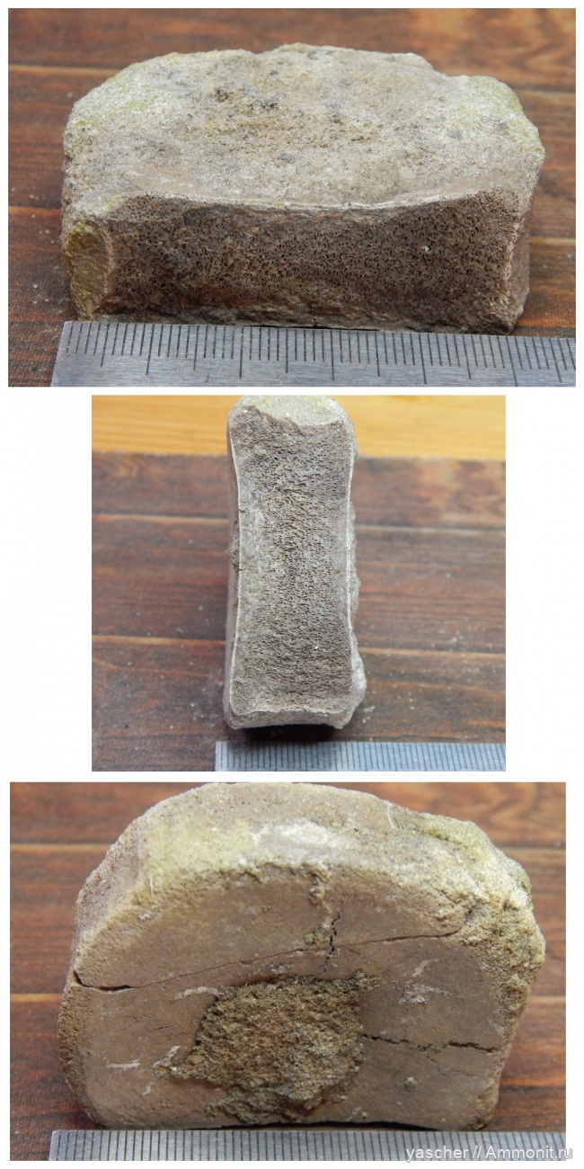 Сохранность находок в слое довольно печальная, но что имеем.При расчистке обрушилась большая часть горизонта и выпал малюсенький кусочек позвонка.Ниже по склону обнаружилась большая часть, а найти третью так у не получилось...