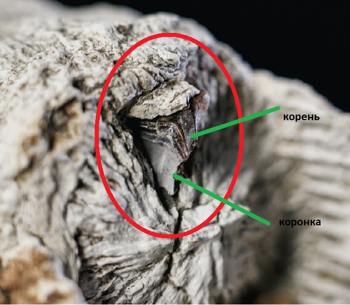 Возможно, на главной фотографии зуб не настолько очевиден, согласна. Но Вы можете открыть ниже по ссылке фото в момент находки и там понятно где ругоза и где обломок зуба. | ||||||