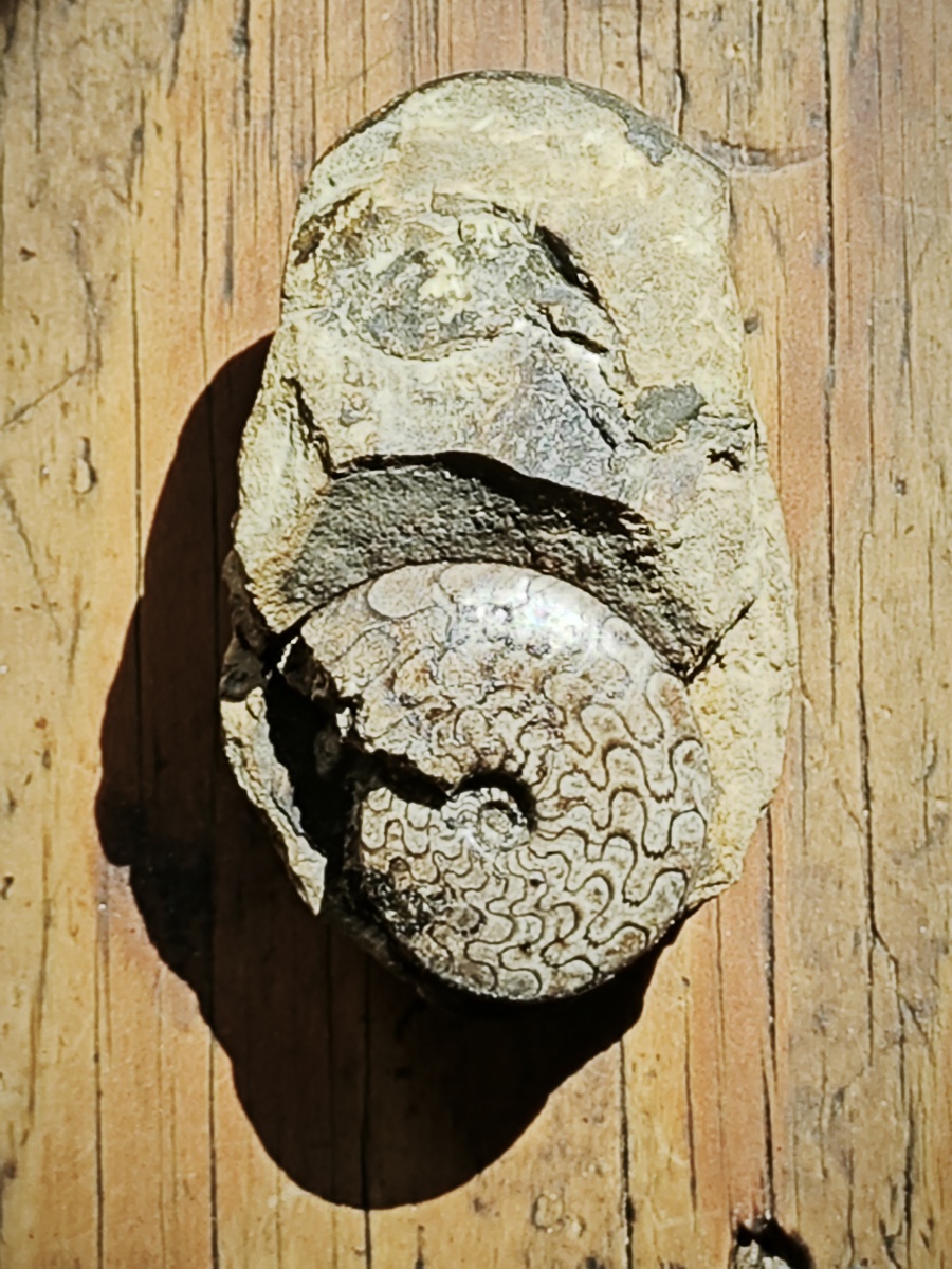 Фрагмокон Vercherites subcristatum Kiparisova, неполный на треть оборота, в конкреции .