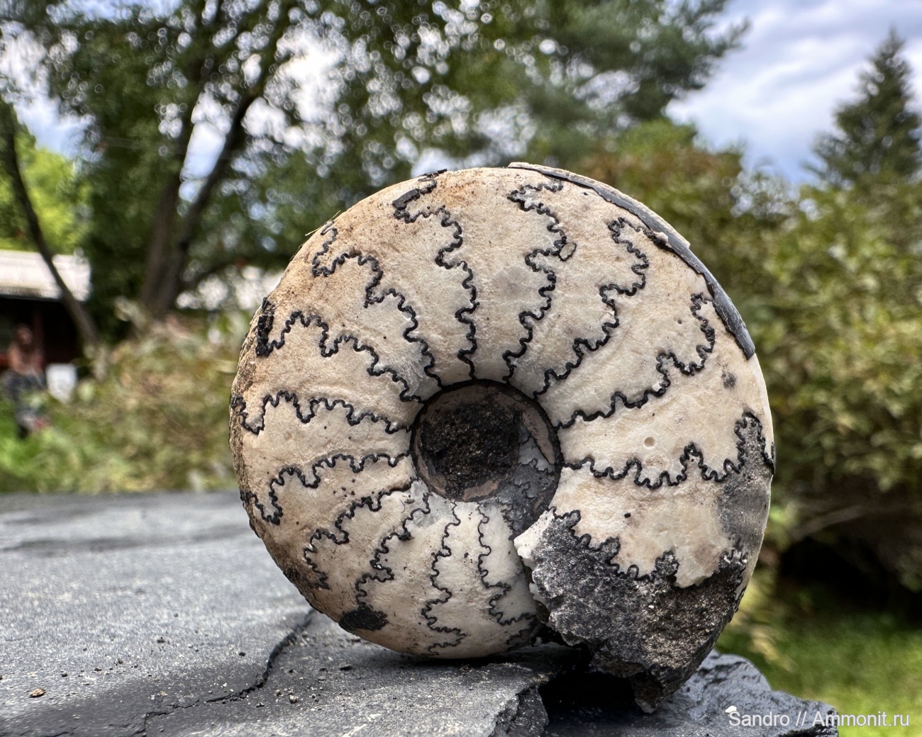 Если присмотреться - видно, как лопастные линии повторяют контуры внутренней скульптуры основной раковины.