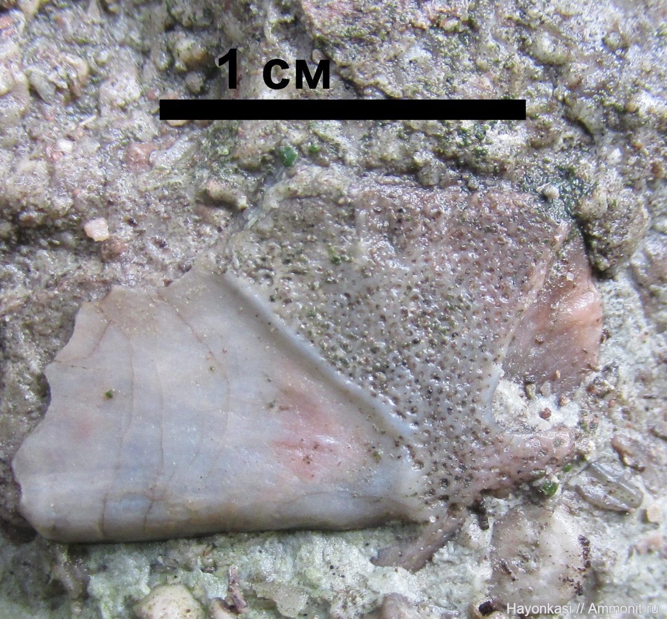 Полевое фото: покровная пластина (предположительно) плакодермы Ptyctodontida в девонском "ракушечнике".