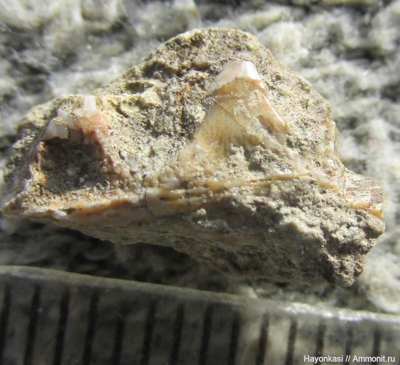 Фрагмент челюсти рыбы (предположительно Акантоды) в породе.