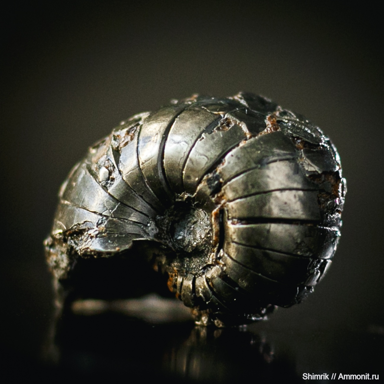У нас особая любовь к этим пузатеньким свёртышам. Данный экземпляр далеко не самый идеальный, конечно, но в пиритовом замещении он выглядит, как привет из далёкого будущего. В общем, если бы 300 млн лет вперёд были головоногие - они бы точно выглядели вот так)
