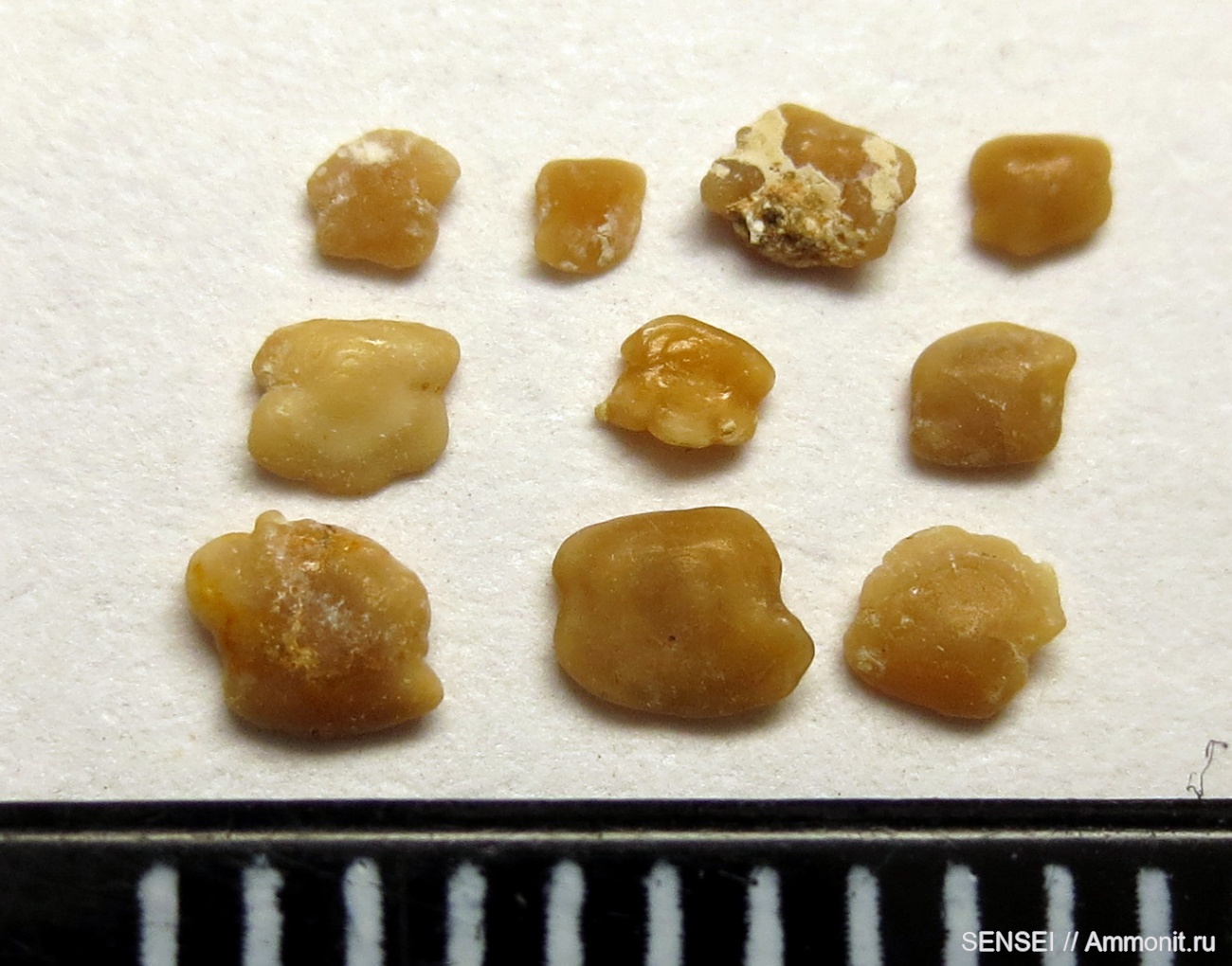 Отолиты ископаемых бычков Neogobius или Mesogobius, а может и тех и других семейства Gobiidae.