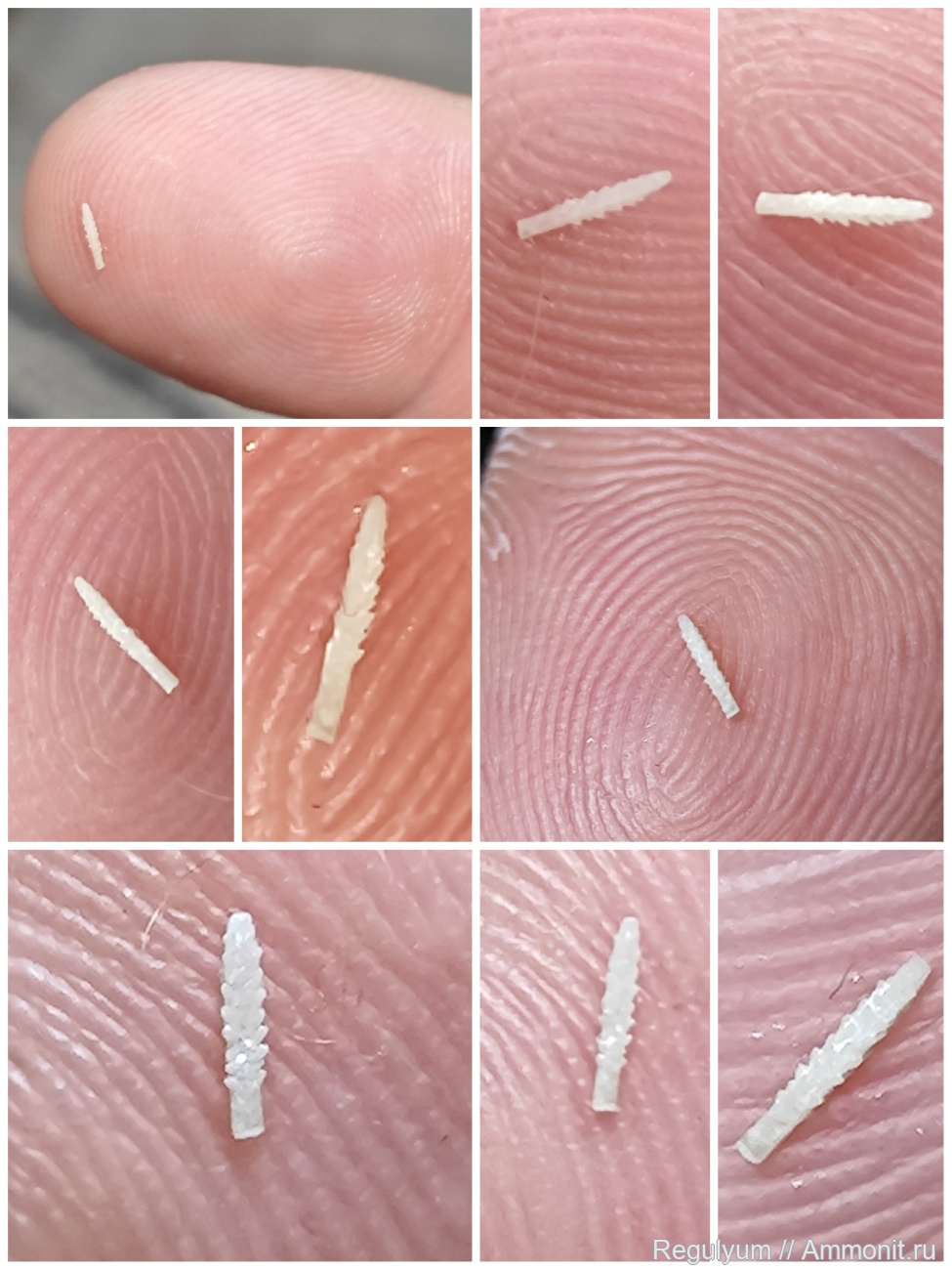 Предположительно игла морского ежа. Очень мелкая. Добыта промыванием мела. При попытки измерять, сломалась. Примерно 4-5 мм. Меньше не находил. Поправьте если что другое или подтвердите, пожалуйста. Бывают ли ещё меньше?