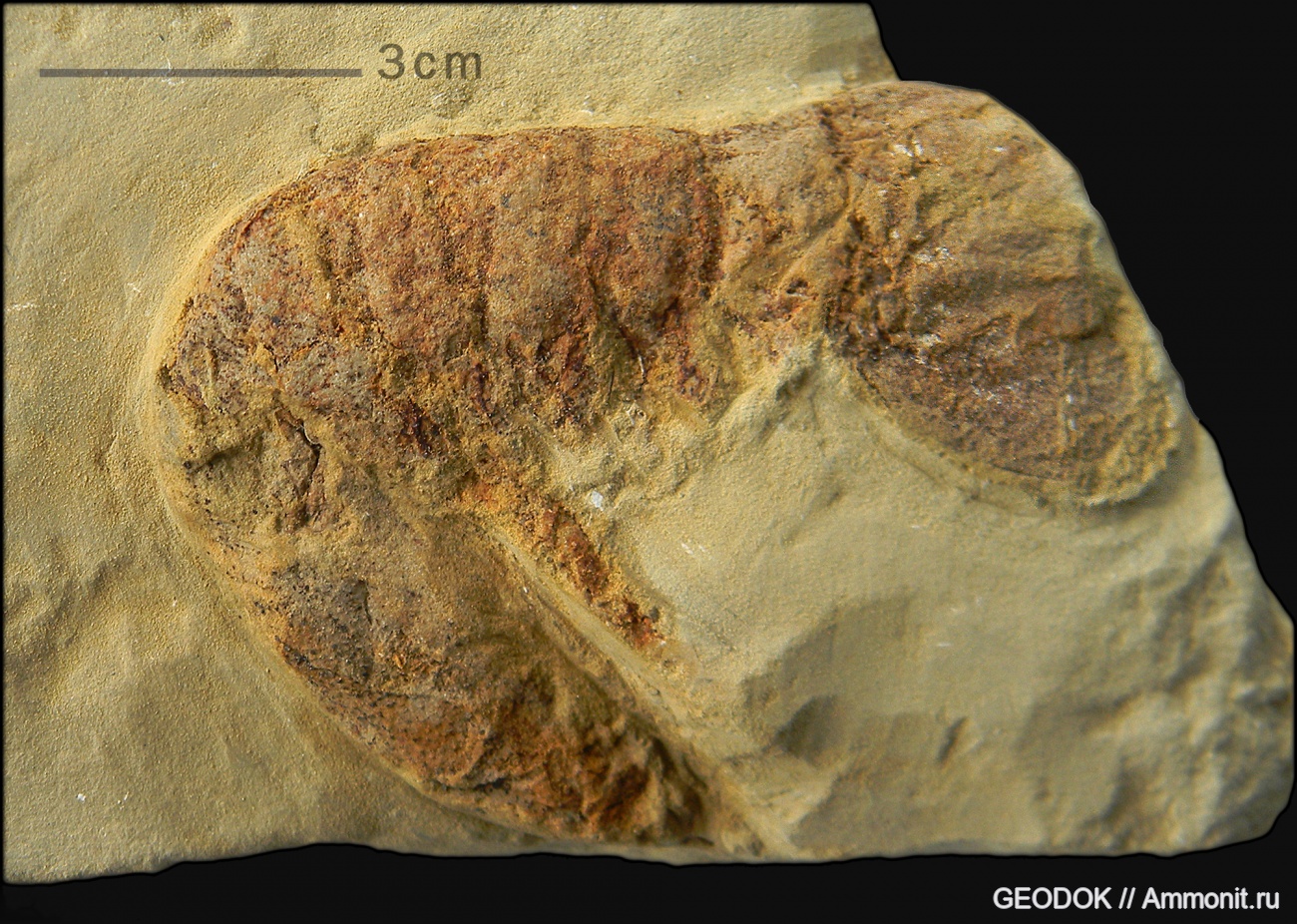 Крупная креветка из басс. р. Псекупс. Если не ошибаюсь, то это единственная находка из позднего миоцена Кавказа. Тело креветки имеет объемную морфологию дорсальной стороны абдомена. У образца прекрасно сохранились цефалоторакс (головогрудь), абдомен (брюшные сегменты) и уроподы (хвост). Более подробное описание будет в книге, выходящей в конце этого года. А пока есть повод подискутировать.
