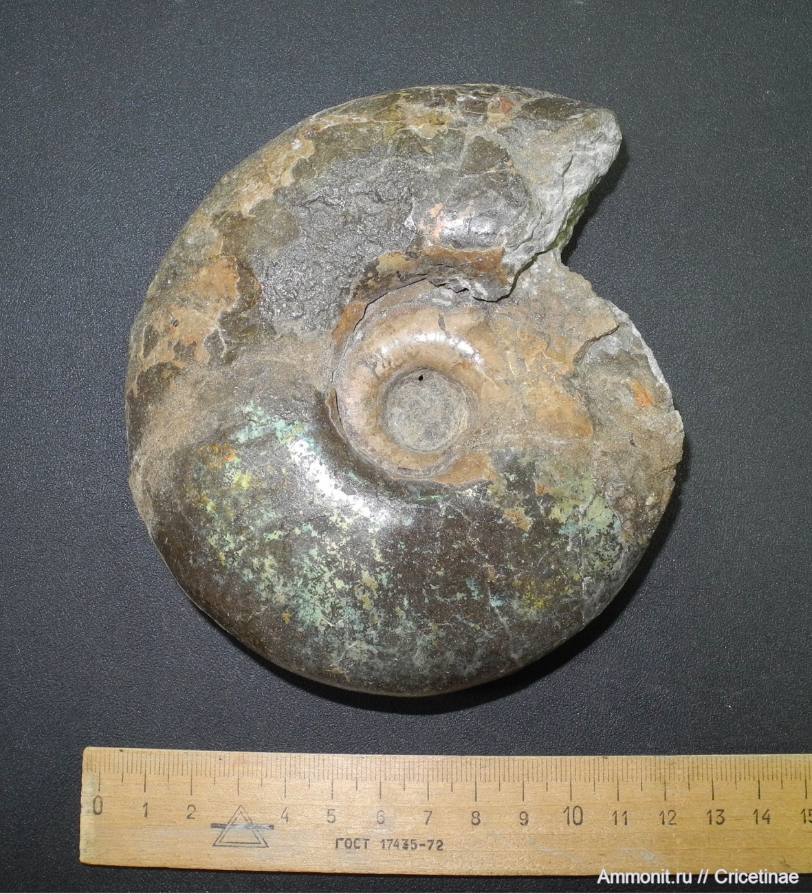 Среди других видов аммонитов этот небольшой, но для краспедита это очень большой размер. | ||||||