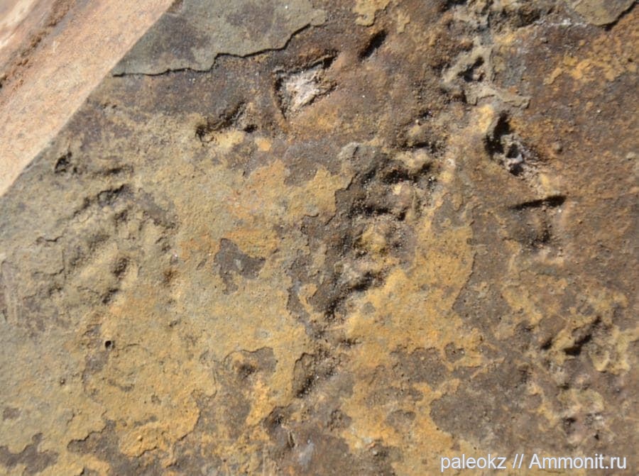Задняя лапа амфибии Utegenia shpinari, видны пальцы длиной 1см. Ранняя пермь, 290 млн лет. Алматинская область. Чу-Илийские горы.