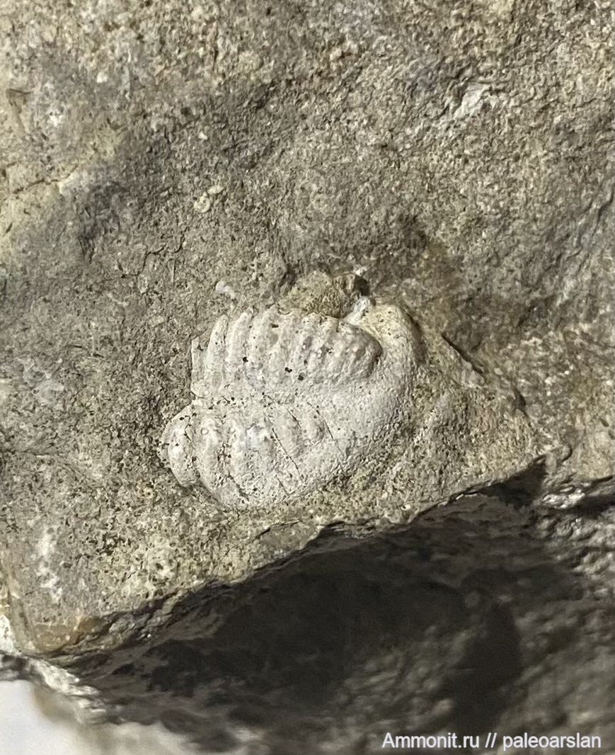 Чисто по случайности взял посмотреть небольшой камень и заметил что-то белое, присмотревшись заметил что это пигидий трилобита.