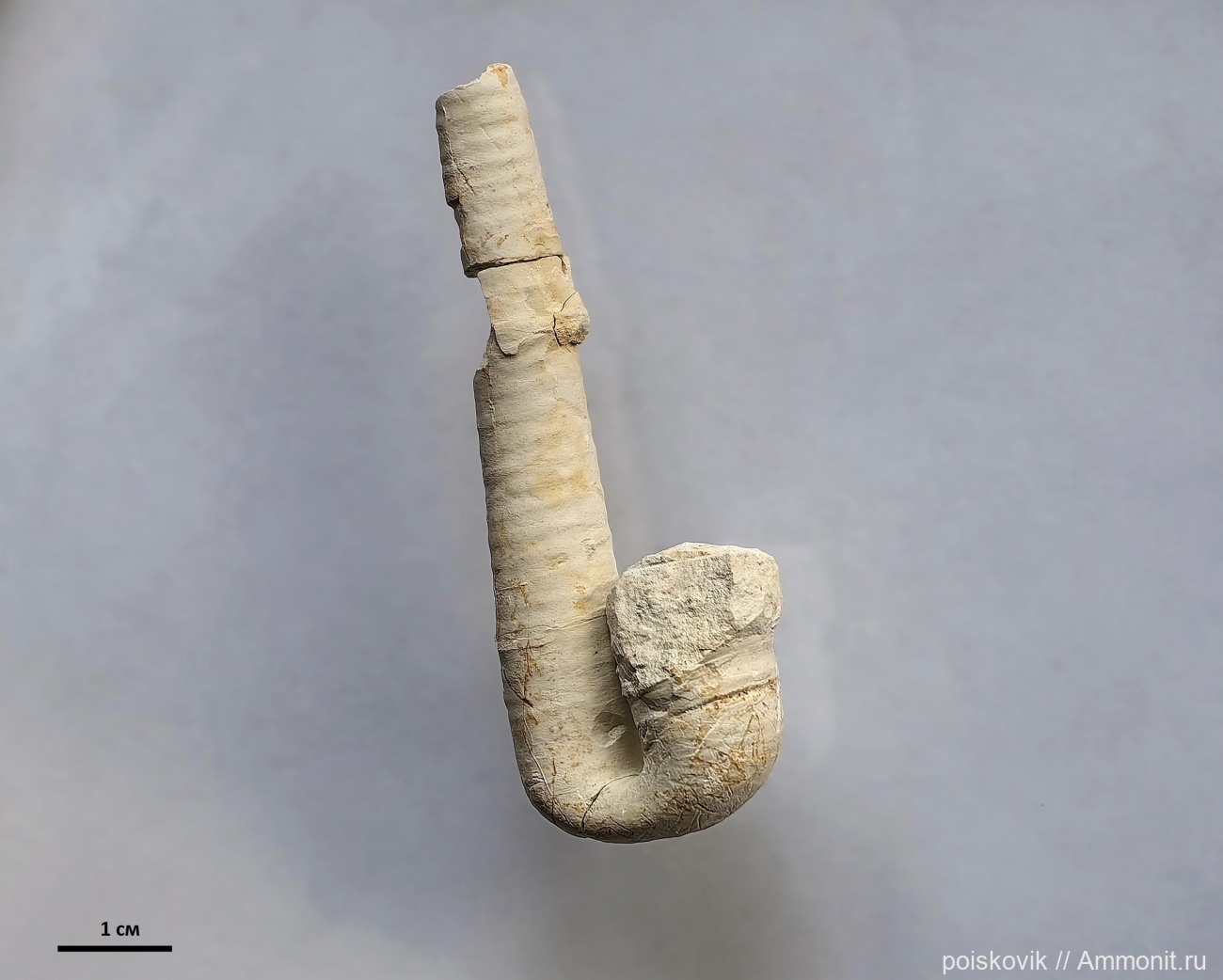 Ядро гетероморфного аммонита Hamites из кампан-маастрихтских пород Белогорского района Крыма