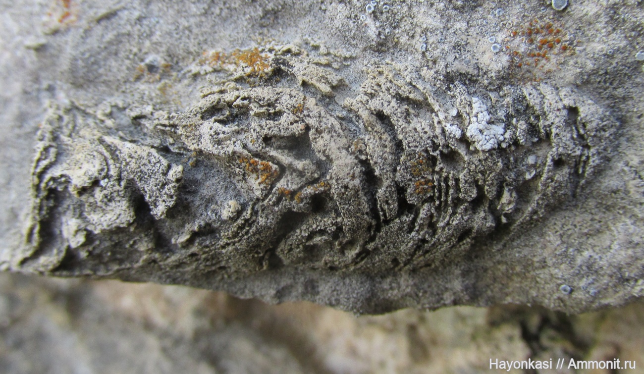 В облицовке Изборской крепости встречаются те же окаменелости и в том же соотношении, что в Псковском Кремле и Окольном городе (фрагменты криноидей, разрушенные створки Атрипид, небольшие строматопораты). Вот относительно живописная колония Stromatoporoidea.