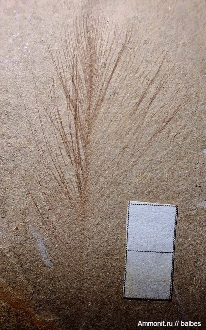 На той же плитке, рядом с пером, была вскрыта конкреция, в которой находится голова рыбы Фото