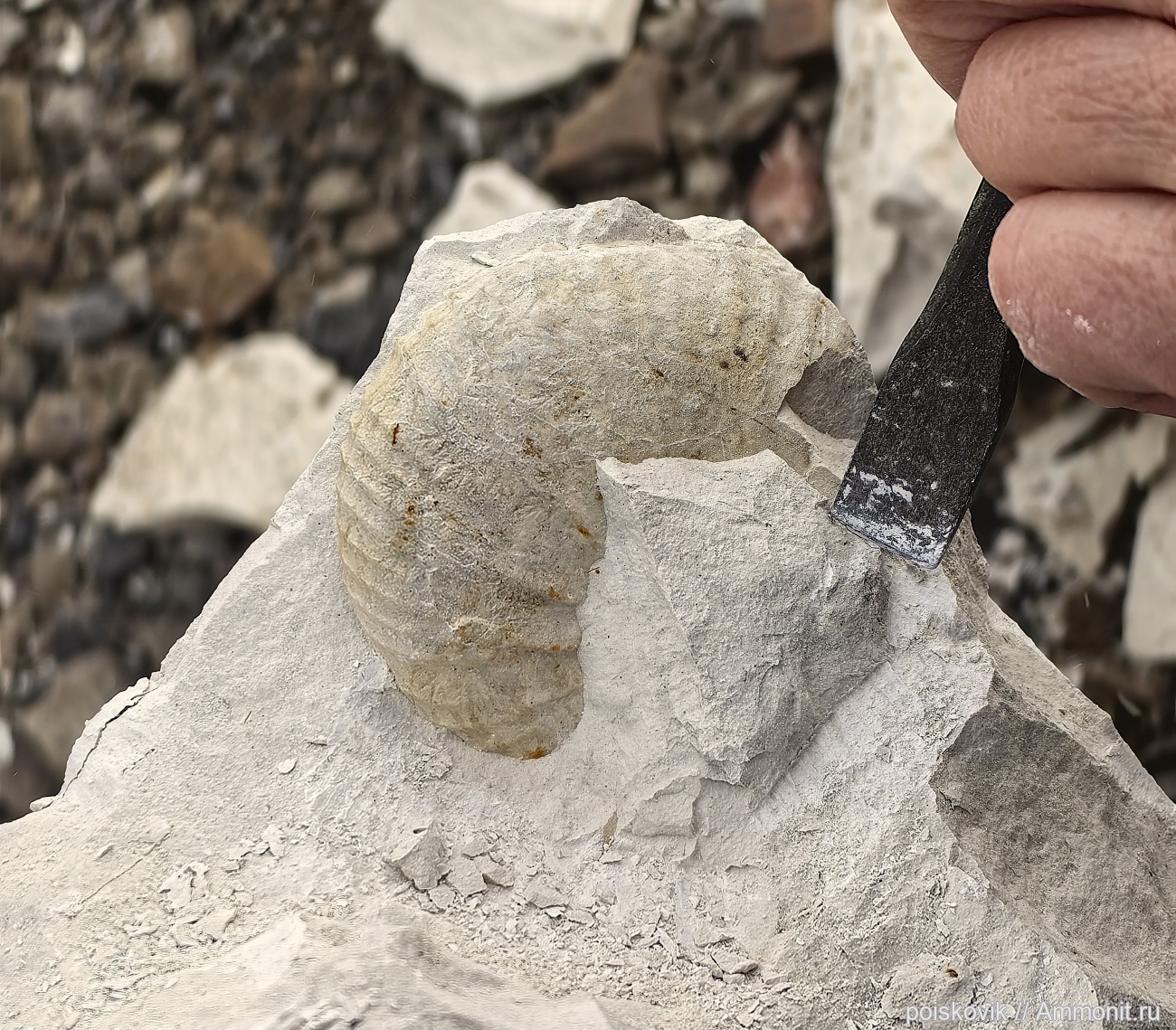 Кропотливый процесс извлечения хрупкого аммонита из прочных мергелевых пород. Скульпторы отдыхают...