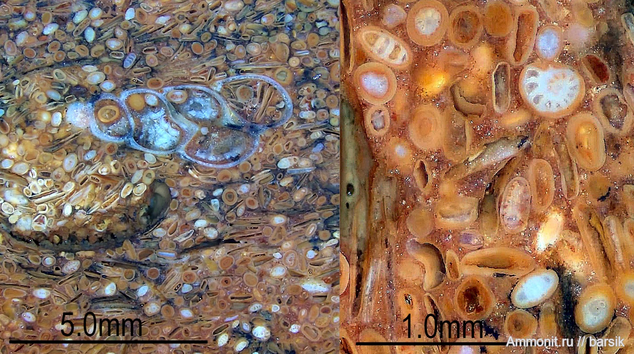 Здесь, скорее всего, в пустую раковину гастроподы донными течениями набилась пока еще несцементированная порода с уже полностью сформировавшимися ооидами.