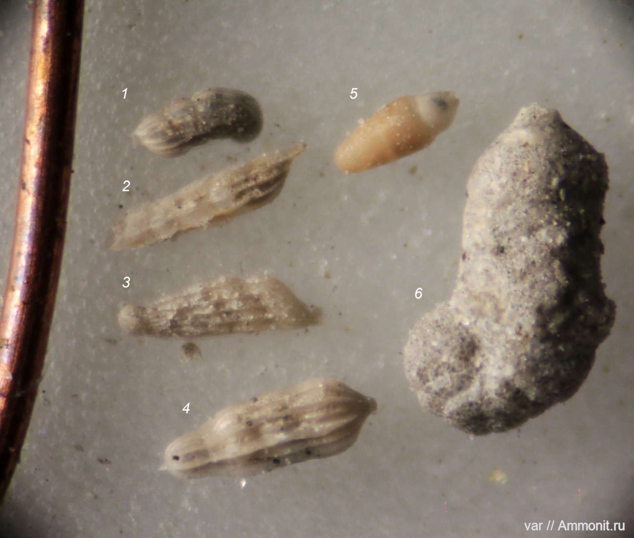 Орбиньинойдес (6) - настоящий богатырь среди прочих фораминифер. Представленное здесь соотношение размеров не случайное совпадение. Все найденные форы этого рода значительно больше других фораминифер.