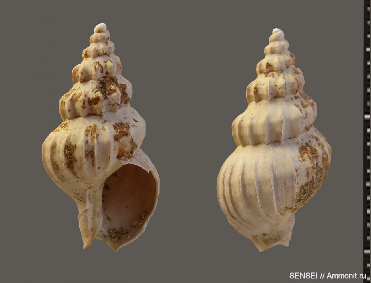 Редкая, но ещё реже встречающаяся с сохранившимися протоконхом и устьем, раковина из семейства Nassariidae.