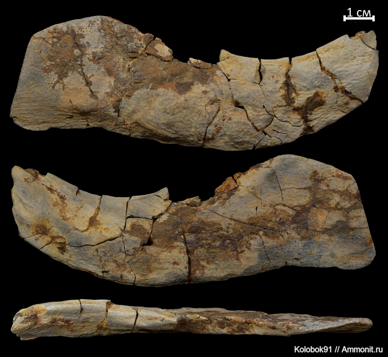 Фрагмент нижней челюсти крупной артродиры. Масштаб.