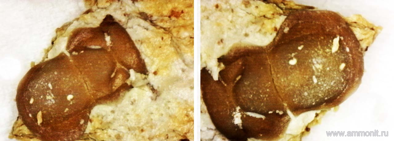 Обычно там неприличный сохран:))) А тут в глине много лимонита, и он, видимо, как-то поучаствовал :)))
