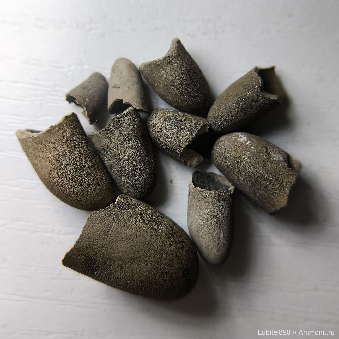 Длина самого крупного "напёрстка" - 19 мм. Когда только впервые их увидел при промывке сначала и не понял, что это окаменелость.