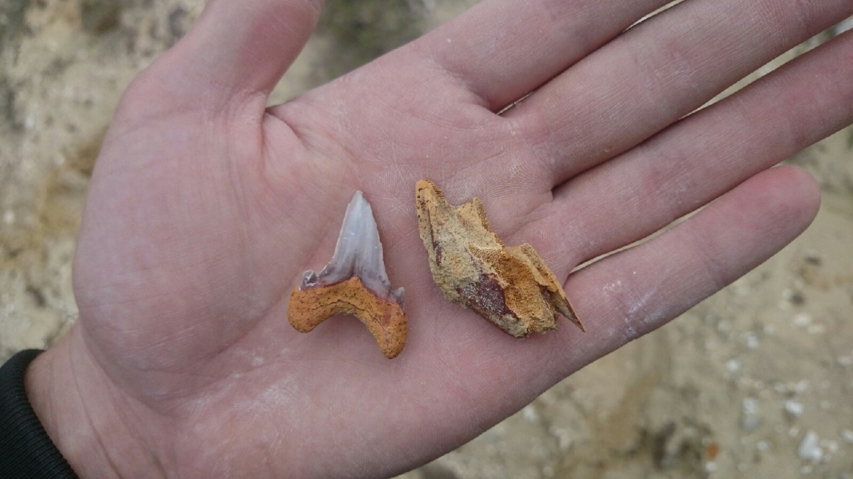 Достаточно крупный зуб для нашего мела. Фото на месте находки.