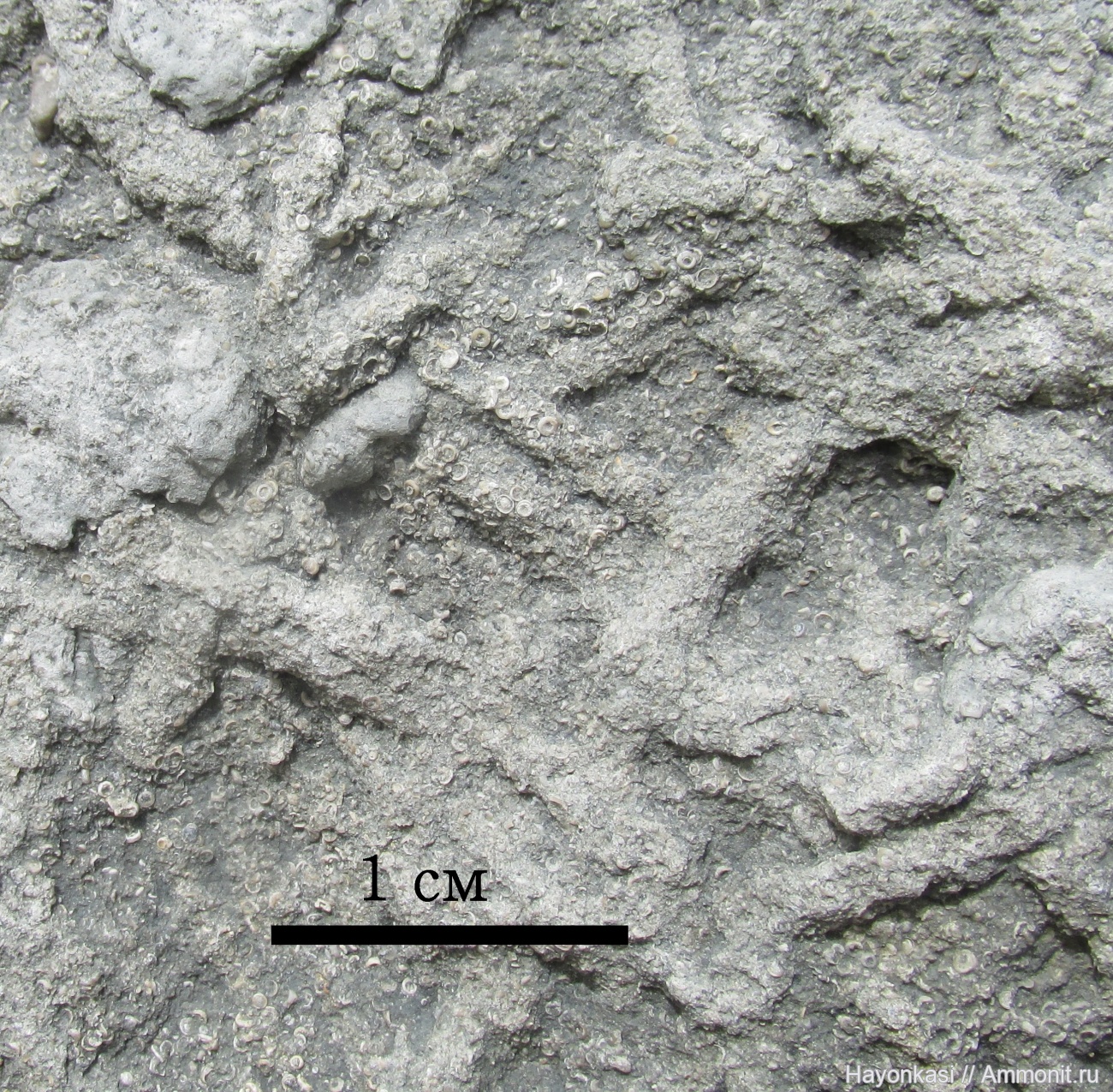 В прослойке серого мергеля с белыми вкраплениями часто встречаются ихнофоссилии - прямые пересекающиеся ходы червей-илоедов.