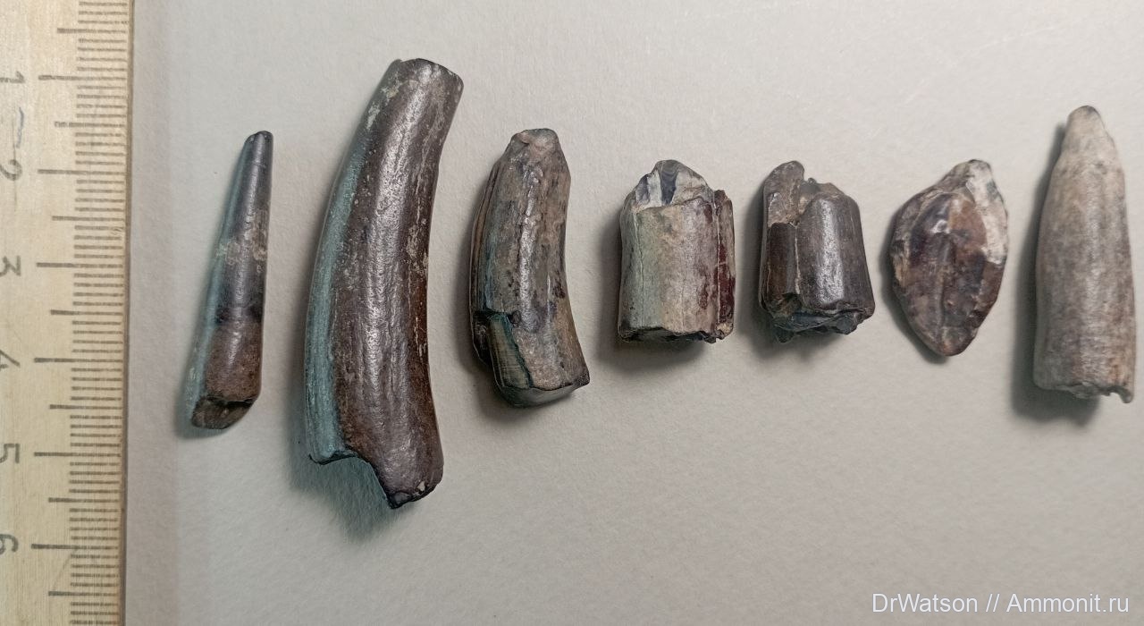 Все образцы собраны в бассейне р.Апчас. Предполагаю, что они принадлежат китообразным (типа базилозаврид), предположительный возраст-эоцен. На самой точке поиска неогеновые фоссилии практически не встречается, зато переотложенная из эоцена (бартонский ярус) ихтиофануана там преобладает и данные находки, скорее всего, также относятся к эоцену. На доп. фотографиях можно посмотреть разные ракурсы каждого зуба: