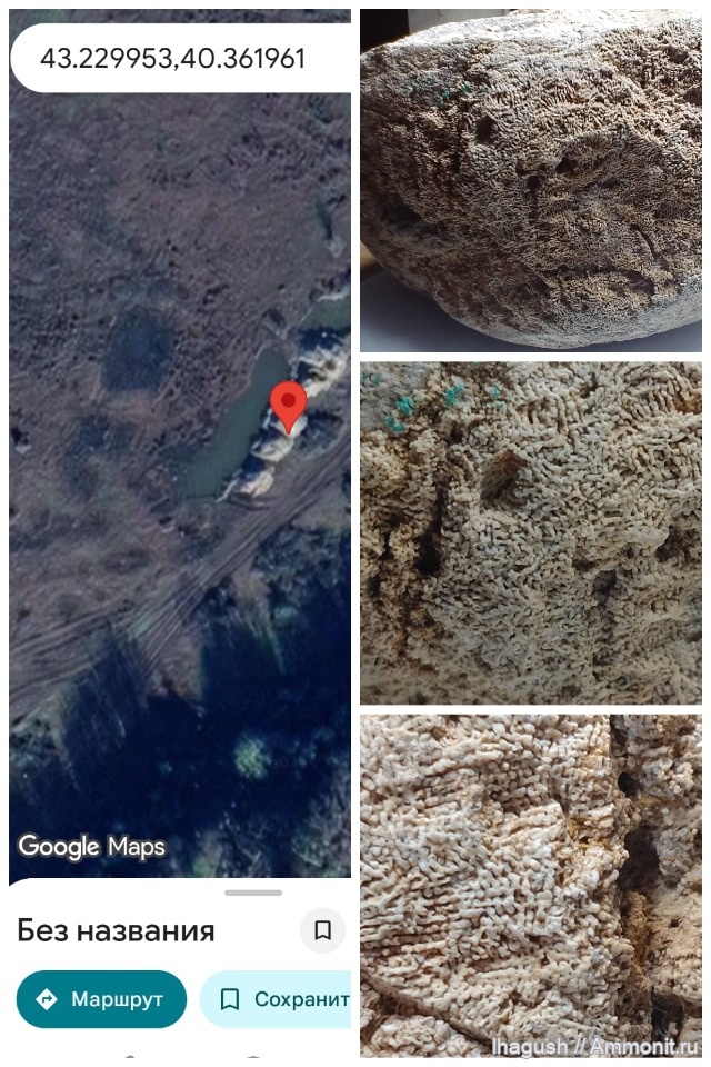 Данный образец был найден в Абхазии, в посёлке Бзыбь, в Гагрском районе Аспа. Я нашел эту окаменелость среди груды камней у недавно выкопанного озера, и все камни там были максимум на глубине 2м. Точный возраст определить трудно, но предположительно это юрский или меловой период, так как породы Бзыби оцениваются этими периодами. Материал окаменелости неоднороден: в одних местах он хрупкий, в других прочный. При царапании материал немного крошится и становится белым. Размер образца 9,5 X 11,5 X 7,5 см. Сама окаменелость состоит из маленьких палочек разной длины и шириной полмиллиметра. В некоторых местах они соединяются. На одной стороне палочки направлены в разные стороны, в то время как на двух других они ориентированы строго в одну сторону. Я также прикрепил фото места, где нашёл этот образец.