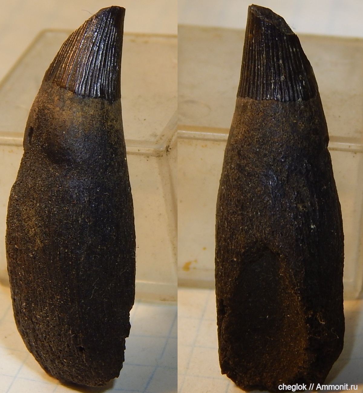 На Гемме Андрей Ступаченко меня малость поихтиозаврил. Я сумел алаверднуть аммонитами. Зуб этот он словил давно, вроде как в 90-ые годы. Думаю, сайт не испортит, тем более что в галерее ЛФР вроде как пока один зуб ихтиозавра. Размер 43 мм.