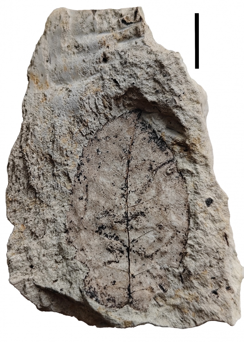 Отпечаток листа граба Carpinus cf. grandis Unger. в рыхлом песчанике.