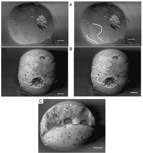 Часть кладок найдены на жилых камерах аммонитов и даже на внутренней поверхности обломков этих камер. Очевидно, что животные, откладывавшие эти яйца, поместили их туда уже после смерти владельцев раковин. Иначе яйца просто не поместились бы в жилую камеру, даже неподалеку от входа, да и разложение тела аммонита погубило бы кладку. А икринки, как отмечают исследователи, выглядят довольно свежими. Даже те яйца, из которых кто-то уже вылупился, не несут заметных следов разложения.