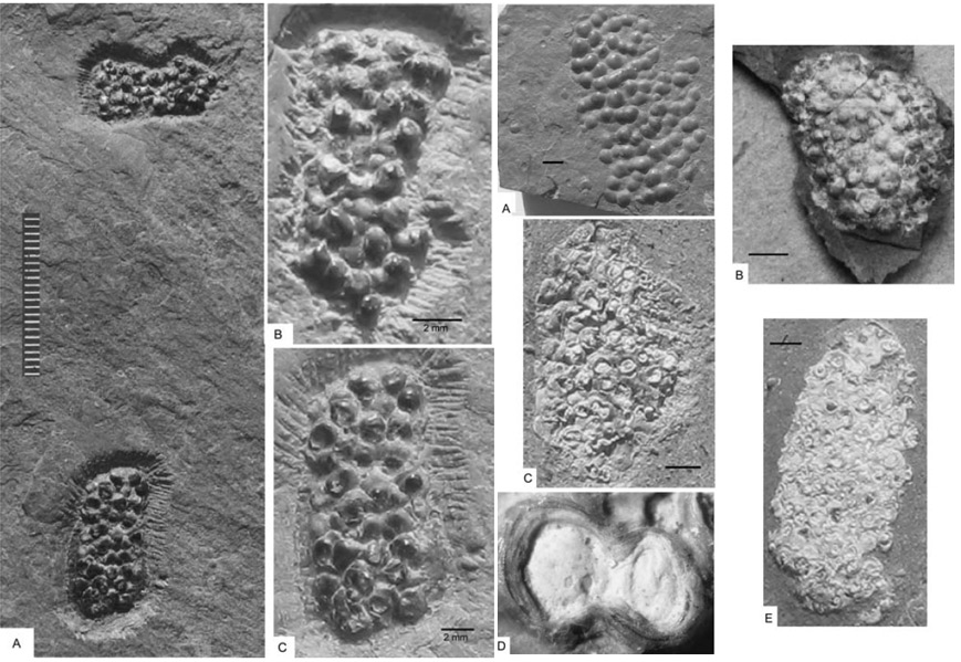 Скопления сферических и субсферических объектов были найдены в глинах кимериджского яруса верхней юры в Дорсете, в районе широко известного "юрского берега". Большинство этих скоплений были обнаружены в глине (возможно, когда-то они были закреплены на водорослях или каком-то ином субстрате), и они не были никаким образом связаны с аммонитами, но некоторые кладки были прикреплены к фрагментам жилых камер крупных раковин аммонитов рода Aulacostephanus.